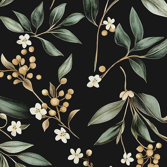 Extra Long Dark Peel and Stick Wallpaper 17.5″ x 393″ – Vintage Floral Green Leaf Botanical Self-Adhesive Vinyl Contact Paper for Bathroom Bedroom Kitchen Cabinet Drawer Walls PVC DIY Decor