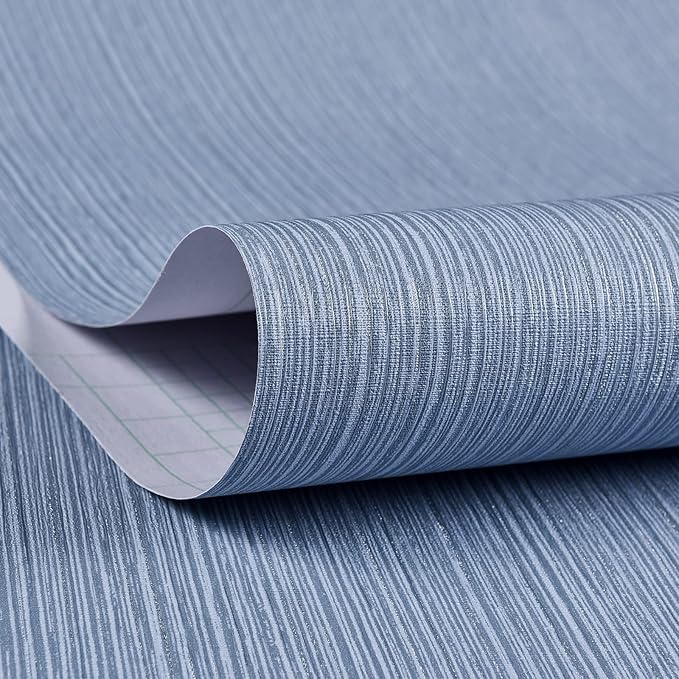 Grasscloth Wallpaper Textured 24in X 393in Fabric Contact Paper Grey Blue Wall Paper Textured Linen Peel and Stick Self-Adhesive Thick Vinyl Embossed Film Wallpaper (Gray Blue)